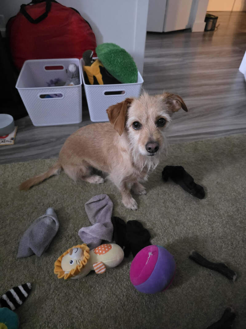 Description: Every day Bonnie takes all her toys and all available socks and tosses them on the ground and waits for you to put them away for her so she can do it all over again
