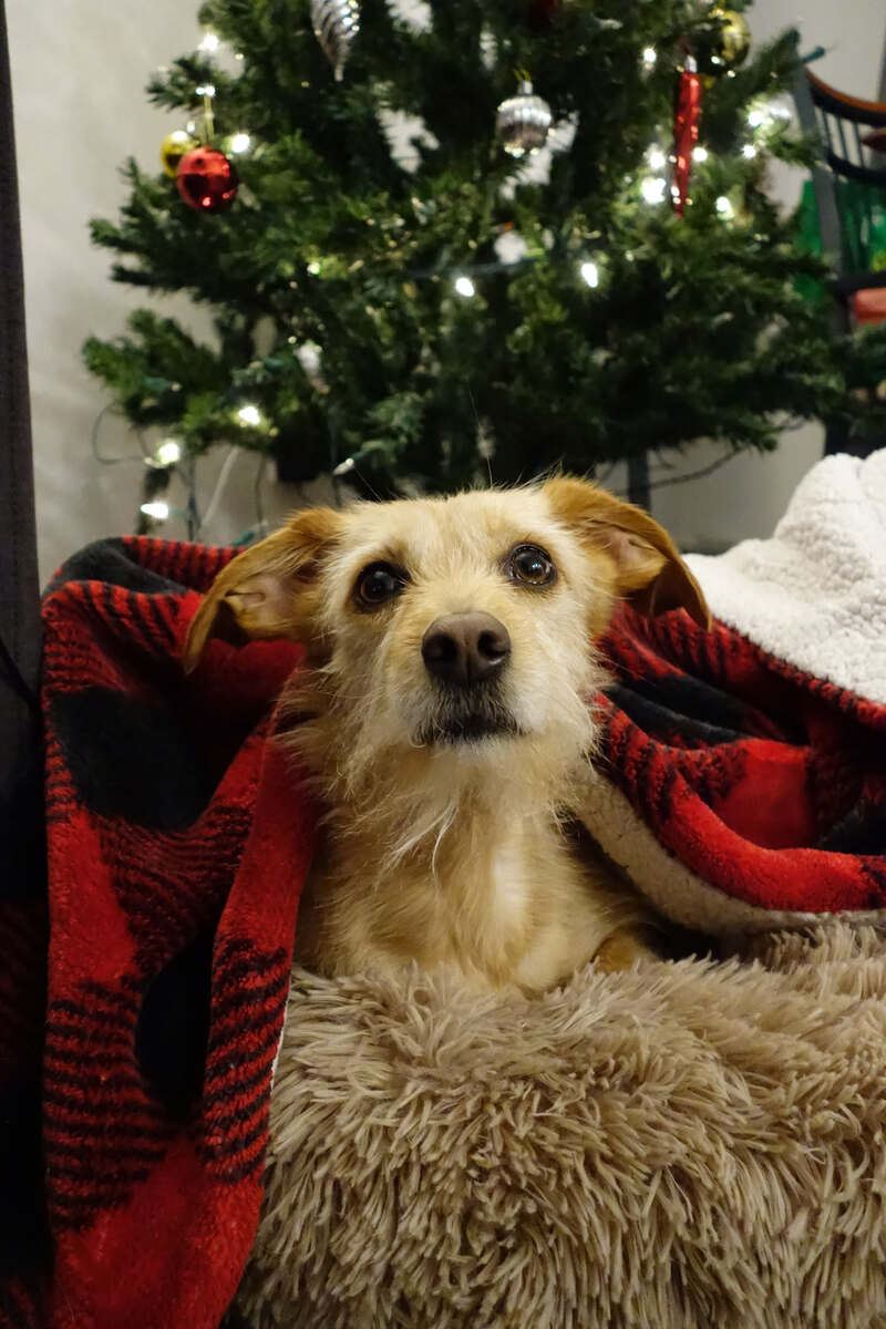 Description: Bonnie awaits Santa under the Christmas tree, hopefully she receives a gift